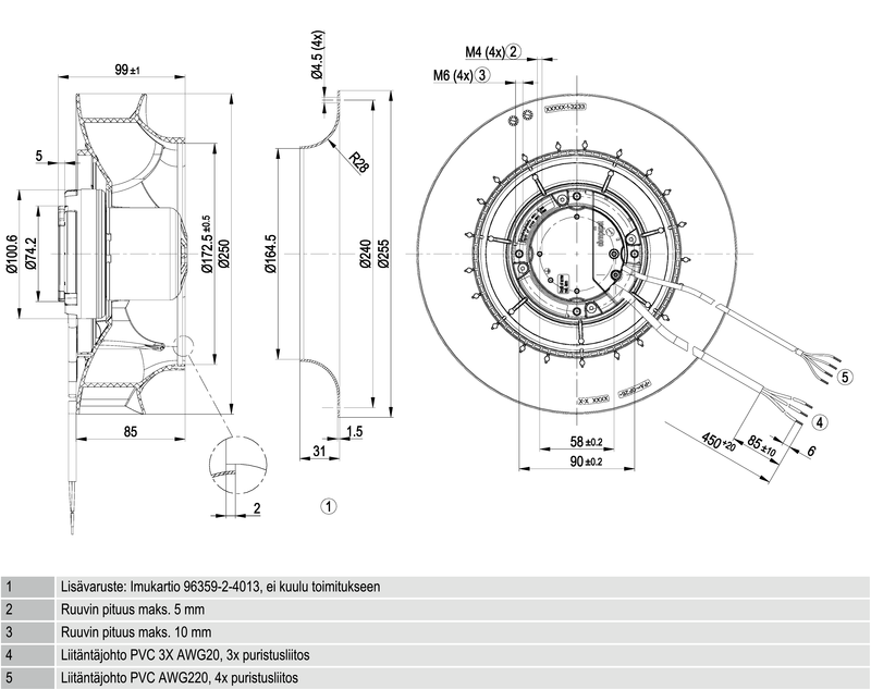 Moottorin malli Elektronisesti kommutoitu EC-ulkoroottorimoottori integroidulla ohjaustekniikalla
