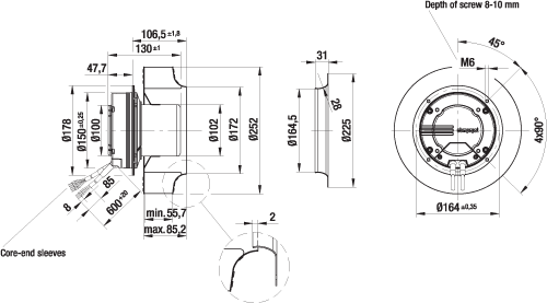 Kaavuton radiaalipuhallin. Varustettu energiaasäästävällä EC-moottorilla integroidulla käyttö- ja ohjauselektroniikalla.