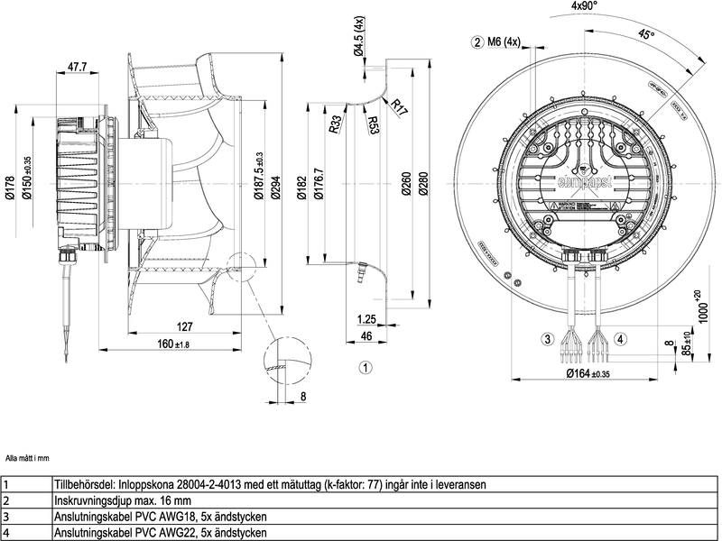 Kuvaus EC-radiaalimoduuli Radipac, Airfoil-siipipyörä