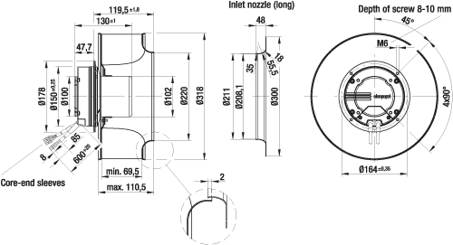 Kaavuton radiaalipuhallin. Varustettu energiaasäästävällä EC-moottorilla integroidulla käyttö- ja ohjauselektroniikalla.