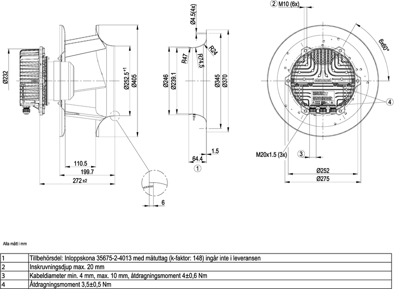 Moottorin malli Elektronisesti kommutoitu EC-ulkoroottorimoottori integroidulla ohjaustekniikalla