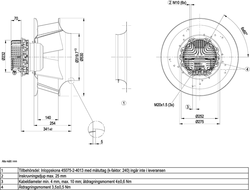 Moottorin malli Elektronisesti kommutoitu EC-ulkoroottorimoottori integroidulla ohjaustekniikalla