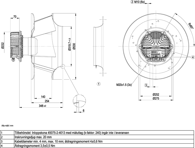 Moottorin malli Elektronisesti kommutoitu EC-ulkoroottorimoottori integroidulla ohjaustekniikalla
