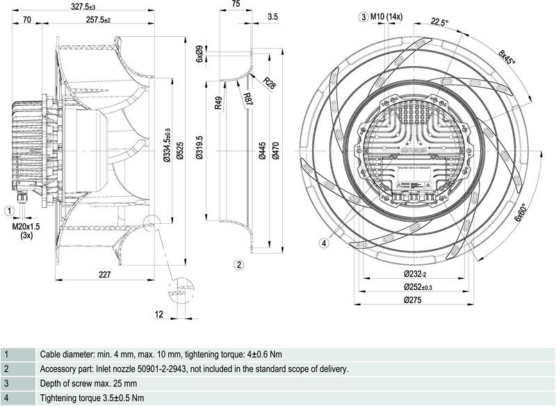 Radialfläkt utan kåpa. Försedd med energieffektiv EC-motor med integrerad driv- och styrelektronik.