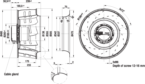 Kaavuton radiaalipuhallin. Varustettu energiaasäästävällä EC-moottorilla integroidulla käyttö- ja ohjauselektroniikalla.
