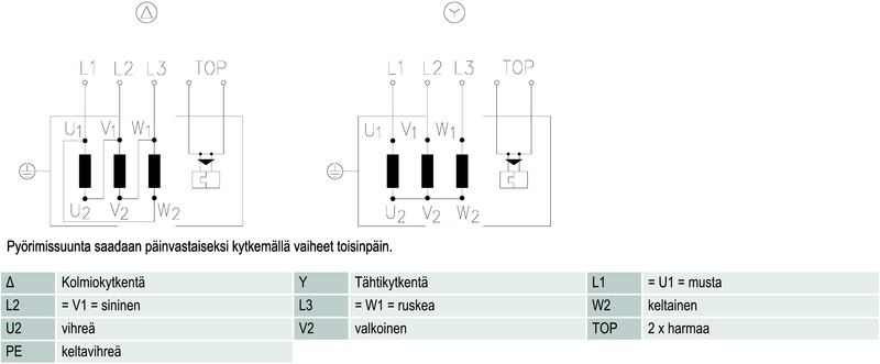 | Pyörimissuunta | Myötäpäivään roottoriin päin katsottuna |