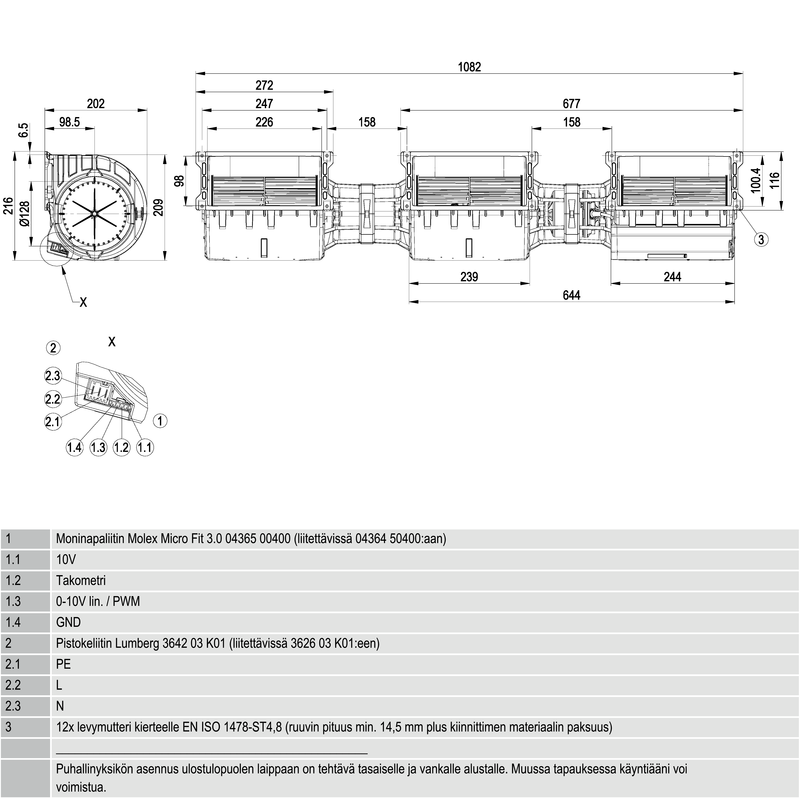 Moottorin malli Elektronisesti kommutoitu EC-ulkoroottorimoottori integroidulla ohjaustekniikalla