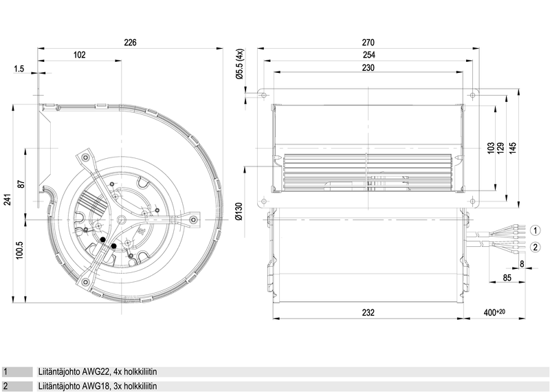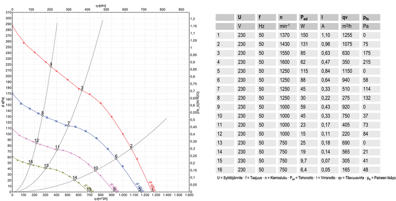 Molemmin puolin imevä radiaalipuhallin eteenpäintaivutetuin siivin. Varustettu energiaasäästävällä EC-moottorilla jossa on integroitu käyttö- ja ohjauselektroniikka.