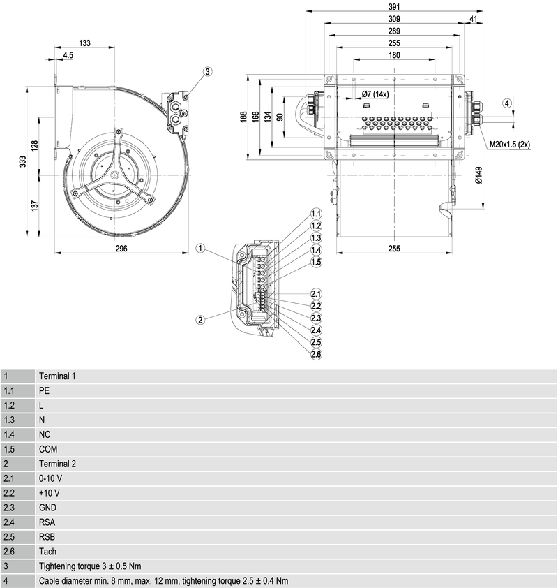 RadiFit on suoravetoinen, molemmin puolin imevä kaavullinen radiaalipuhallin eteenpäin kaartuvin F-siivin.