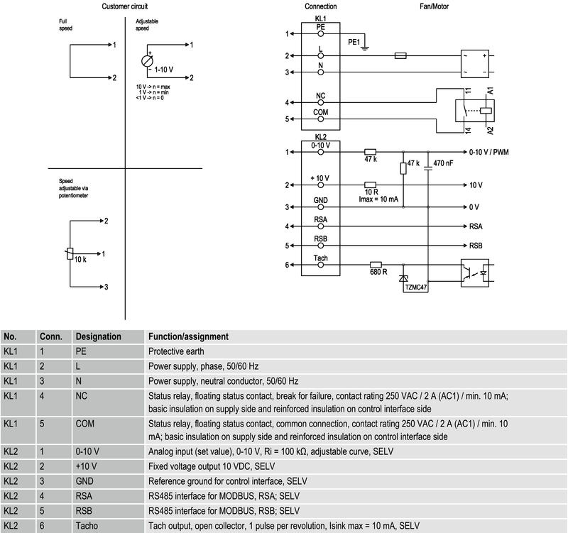 – Kierrosnopeutta ohjataan 0-10 V signaalilla tai PWM:llä