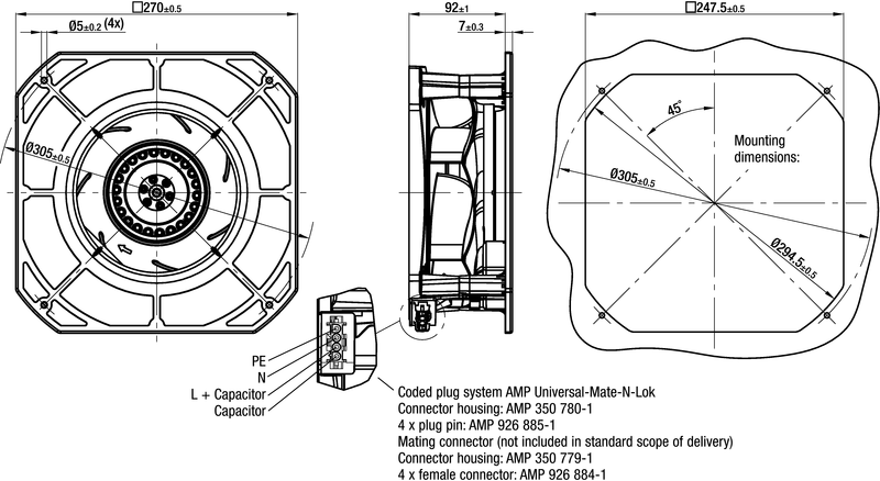 Moottorin malli Elektronisesti kommutoitu EC-ulkoroottorimoottori integroidulla ohjaustekniikalla