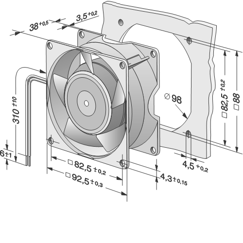 | Siipipyörä | Muovia PA, taaksepäin kaartuvat siivet 6 kpl |