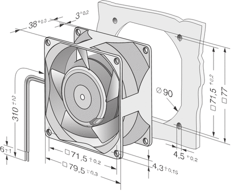 | Siipipyörä | Muovia PA, taaksepäin kaartuvat siivet 6 kpl |