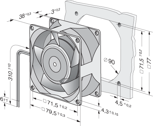 | Siipipyörä | Muovia PA, taaksepäin kaartuvat siivet 6 kpl |
