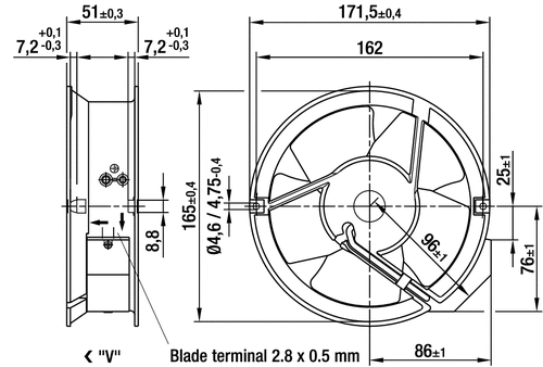 | Siipipyörä | Muovia PA, taaksepäin kaartuvat siivet 6 kpl |