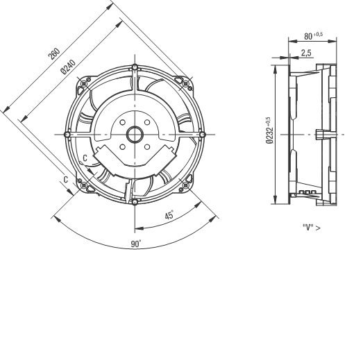 Kuvaus EC-radiaalimoduuli Radipac, Airfoil-siipipyörä