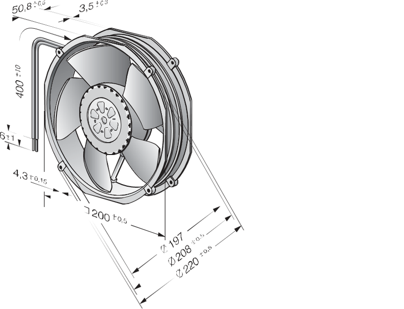| Siipipyörä | Muovia PA, taaksepäin kaartuvat siivet 6 kpl |