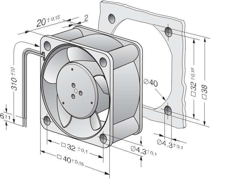 | Siipipyörä | Muovia PA, taaksepäin kaartuvat siivet 6 kpl |