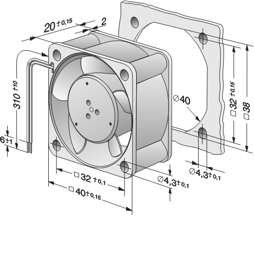 | Siipipyörä | Muovia PA, taaksepäin kaartuvat siivet 6 kpl |