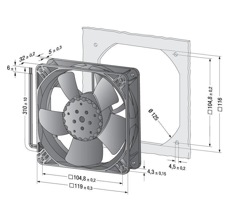 | Siipipyörä | Muovia PA, taaksepäin kaartuvat siivet 6 kpl |