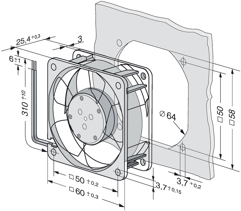 | Siipipyörä | Muovia PA, taaksepäin kaartuvat siivet 6 kpl |
