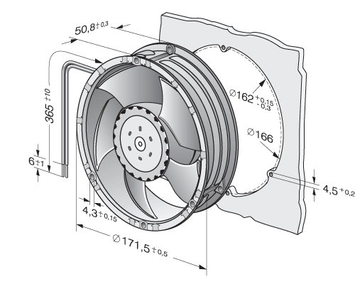 Tehokas, kompakti tuuletin, suuri ilmavirtaus korkealla vastapaineella. Hiljainen käyntiääni. Saatavissa optiolla /2