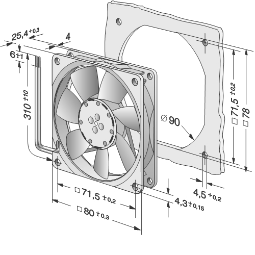| Siipipyörä | Muovia PA, taaksepäin kaartuvat siivet 6 kpl |