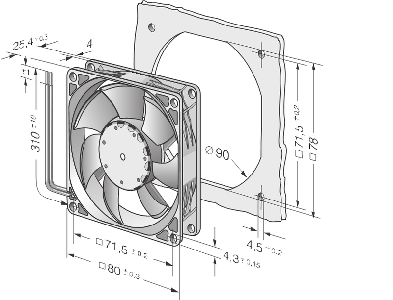 | Siipipyörä | Muovia PA, taaksepäin kaartuvat siivet 6 kpl |