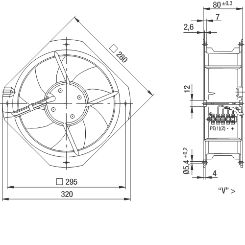 Kierrosnopeuden säätö 0-10 V tai PWM signaallilla, lisäksi tuulettimessa on tacho-ulostulo.