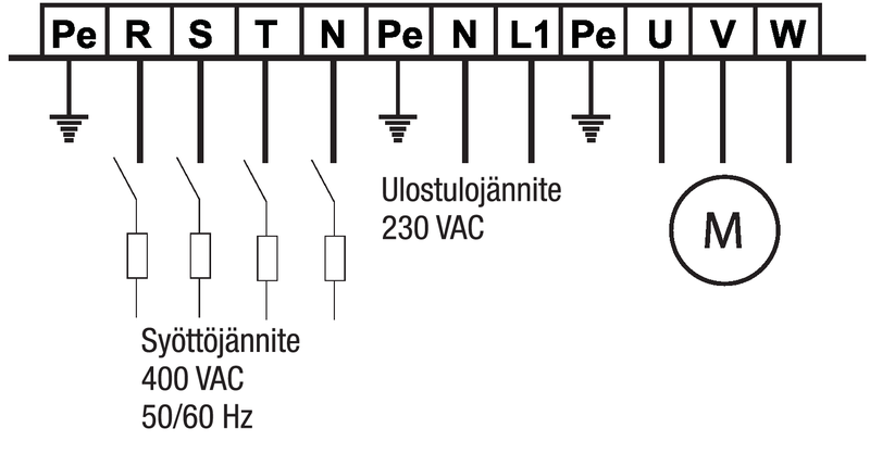 Hyväksynnät EN 61800-5-1;EN60335-1;C22.2 No.77+CAN/CSA-E60730-1;UL1004-7+60730