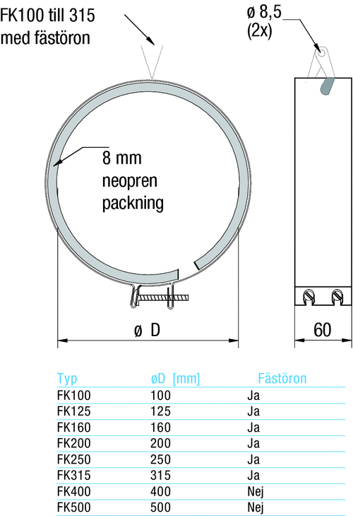 Kiinnityspanta joka helpottaa puhaltimen asennusta ja purkamista huollon ja tarkastusten yhteydessä. Valmistettu sinkitystä teräspellistä ja varustettu värinävaimennetulla ja tiivistävällä neoprenillä (8 mm). Kiinnityspanta kiristetään kahdella ruuvilla ja voi siten kompensoida pienen kokovaihtelun.