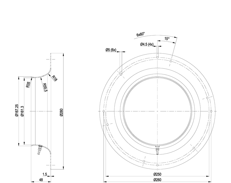 | Koko | 250 mm; imukartio ■ 400 mm |