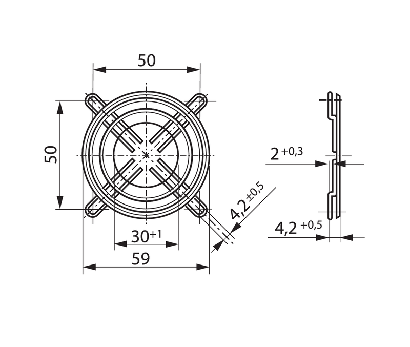 | Siipipyörä | Muovia PA, taaksepäin kaartuvat siivet 6 kpl |