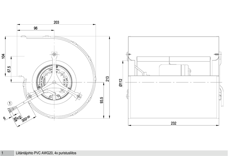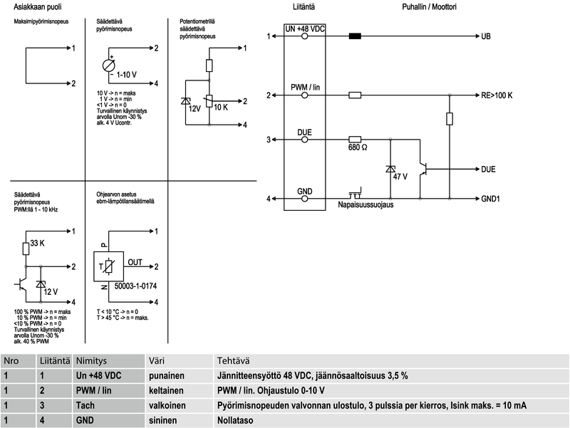 Moottorin malli Elektronisesti kommutoitu EC-ulkoroottorimoottori integroidulla ohjaustekniikalla