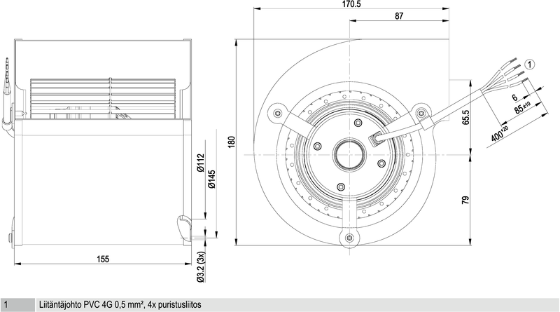 Moottorin malli Elektronisesti kommutoitu EC-ulkoroottorimoottori integroidulla ohjaustekniikalla