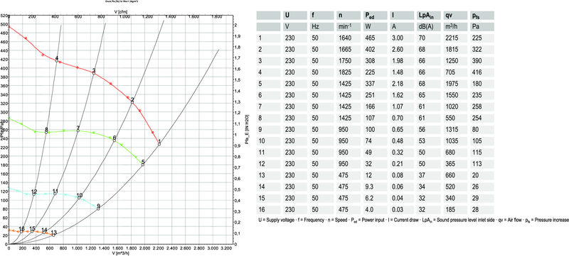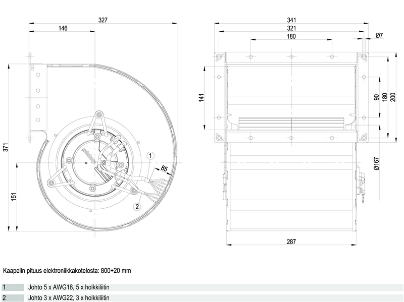 Molemmin puolin imevä radiaalipuhallin eteenpäin taivutetuin siivin. Varustettu energiaa säästävällä EC-moottorilla, jossa on integroitu käyttö- ja ohjauselektroniikka.