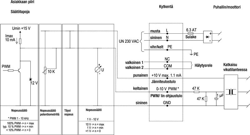 – Kierrosnopeutta ohjataan 0-10 V signaalilla tai PWM:llä