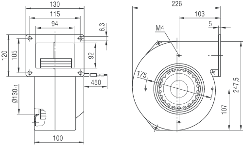 | Siipipyörä | Muovia PA, taaksepäin kaartuvat siivet 6 kpl |