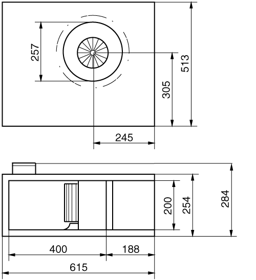 | Koko | 250 mm; imukartio ■ 400 mm |