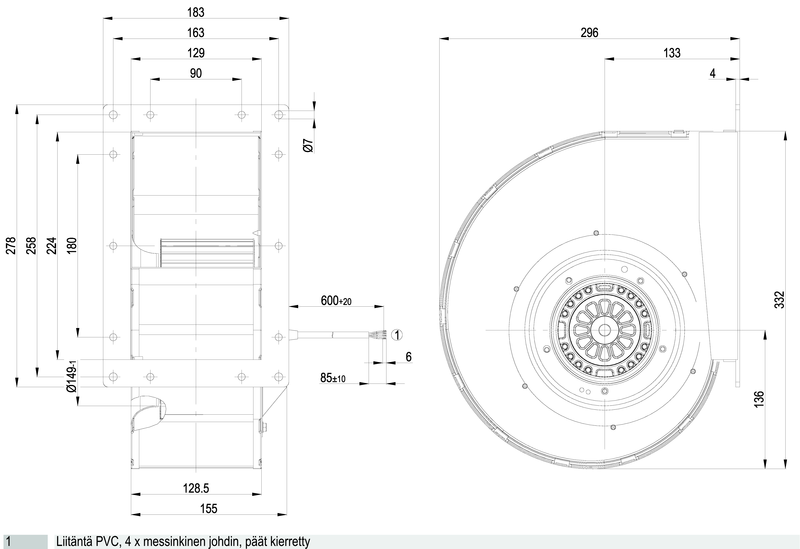 | Moottorin malli | Elektronisesti kommutoitu EC-ulkoroottorimoottori integroidulla ohjaustekniikalla |