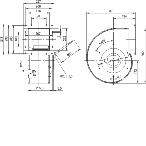 Moottorin malli Elektronisesti kommutoitu EC-ulkoroottorimoottori integroidulla ohjaustekniikalla