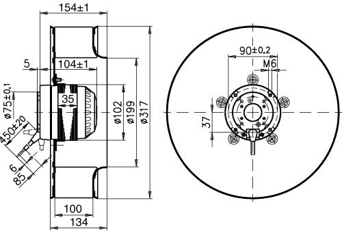 Moottorin malli Elektronisesti kommutoitu EC-ulkoroottorimoottori integroidulla ohjaustekniikalla