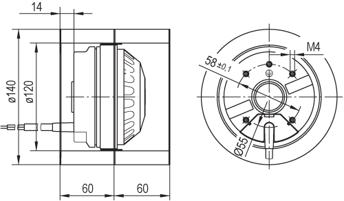 Moottorin malli Elektronisesti kommutoitu EC-ulkoroottorimoottori integroidulla ohjaustekniikalla