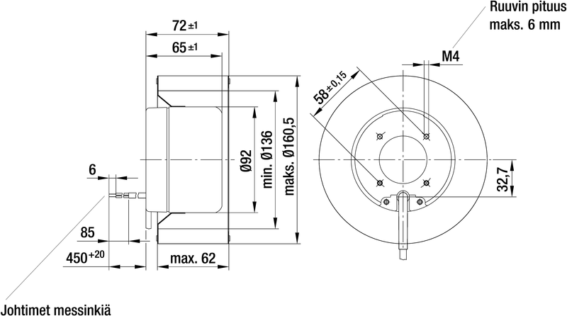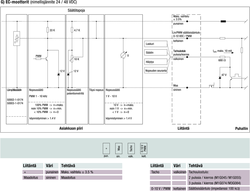 | Moottorin malli | Elektronisesti kommutoitu EC-ulkoroottorimoottori integroidulla ohjaustekniikalla |