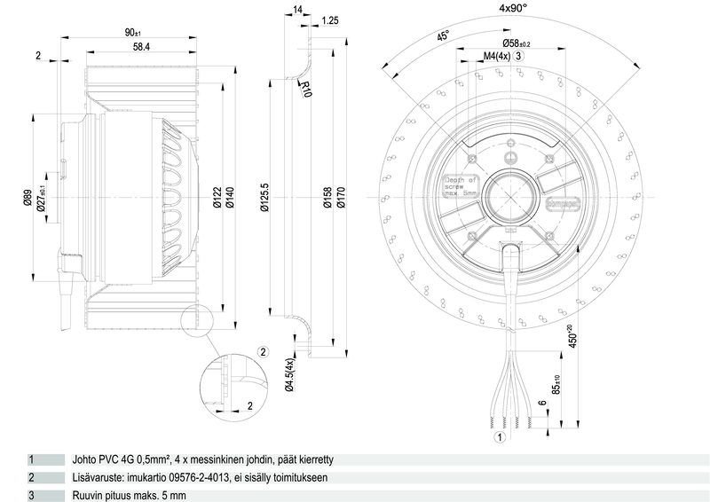 | Moottorin malli | Elektronisesti kommutoitu EC-ulkoroottorimoottori integroidulla ohjaustekniikalla |