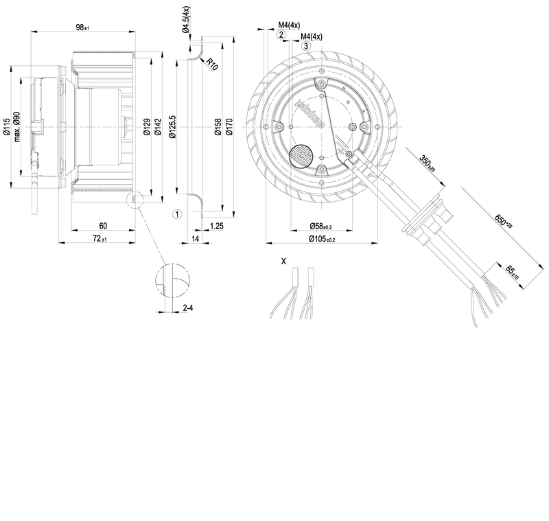 Moottorin malli Elektronisesti kommutoitu EC-ulkoroottorimoottori integroidulla ohjaustekniikalla