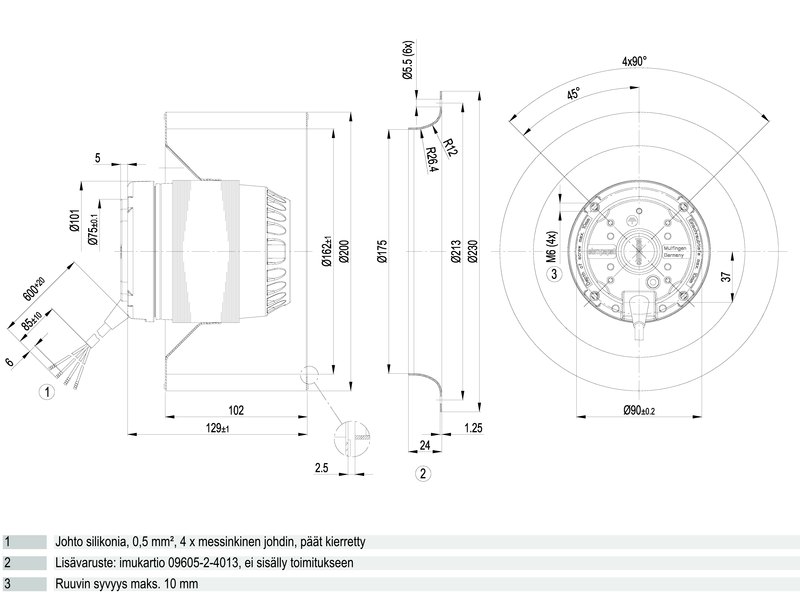 Moottorin malli Elektronisesti kommutoitu EC-ulkoroottorimoottori integroidulla ohjaustekniikalla