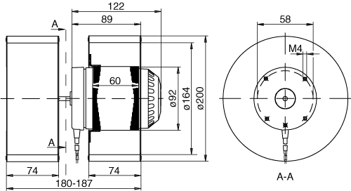 Moottorin malli Elektronisesti kommutoitu EC-ulkoroottorimoottori integroidulla ohjaustekniikalla