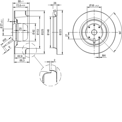 Kuvaus EC-radiaalimoduuli Radipac, Airfoil-siipipyörä
