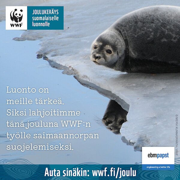Tänä jouluna olemme lahjoittaneet varoja Saimaan norpan suojeluun – puhtaamman luonnon ja kestävän tulevaisuuden puolesta.